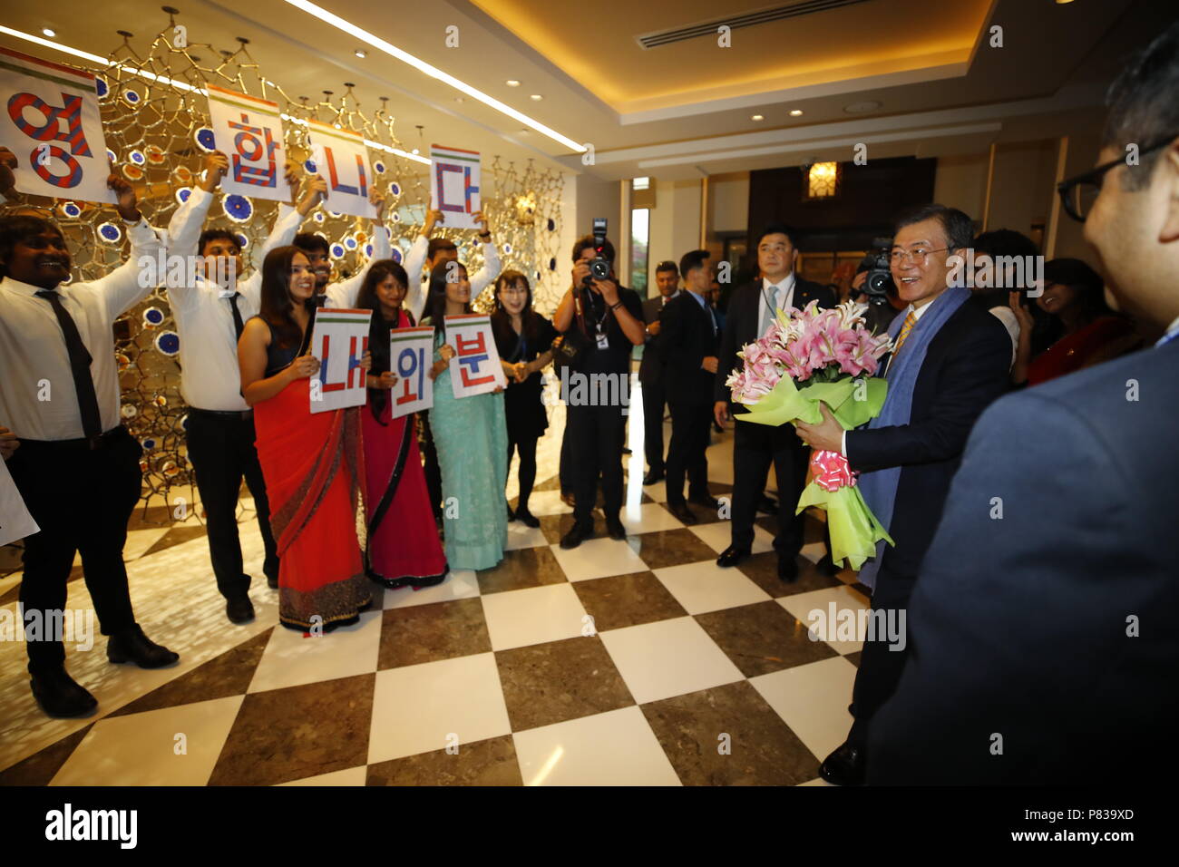 09th July 2018 Moon Visits India South Korean President Moon Jae In R Is Welcomed By Students Of The King Sejong Institute In New Delhi On July 8 2018 Moon Arrived In India